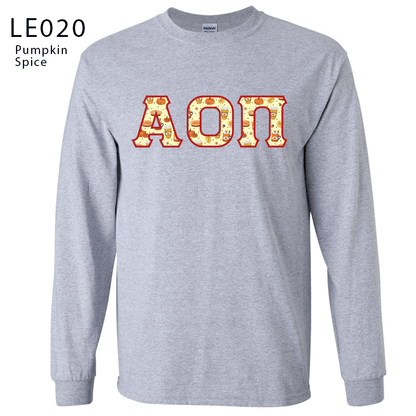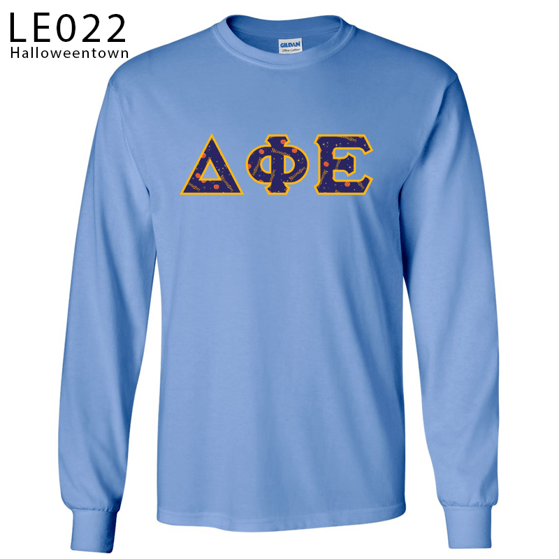 This Limited edition Greek Halloween Long Sleeve T-Shirt comes with your Greek organization letters Printed on the front. Choose from 7 different spooky limited edition patterns. Please select the sweatshirt color and Greek organization letters above; Scroll through the images to see what each patterns looks like!