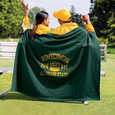 This Greek DryBlend Performance Fleece Stadium Blanket is perfect for the beach, picnic, bbq, football game or even camping. Definitely the ideal accessory for Homecoming festivities. This sweatshirt blanket comes with the Homecoming printed design placed in the middle of the blanket. Please select your organizations Greek letters - we will only use the Greek Symbols in the football. We will always use the current year's date - if you would like to use a different date please call customer service. Do not forget to fill in the school's name as well. This is a printed item - it does NOT have twill sewn-on letters.