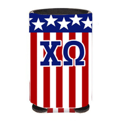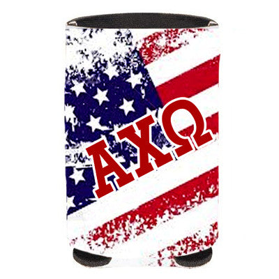 Just in time for summer this Patriotic Koozie can be made for any Sorority or Fraternity. Two styles to choose from. Style 1 has your organizations' Greek Symbols printed on both sides. Style 2 has a faded American Flag wrapped around and your organizations' Greek Symbols will be printed on the front. Please select your Fraternity or Sorority name - we will only use the Greek Symbols on the coozie. This is a printed product.