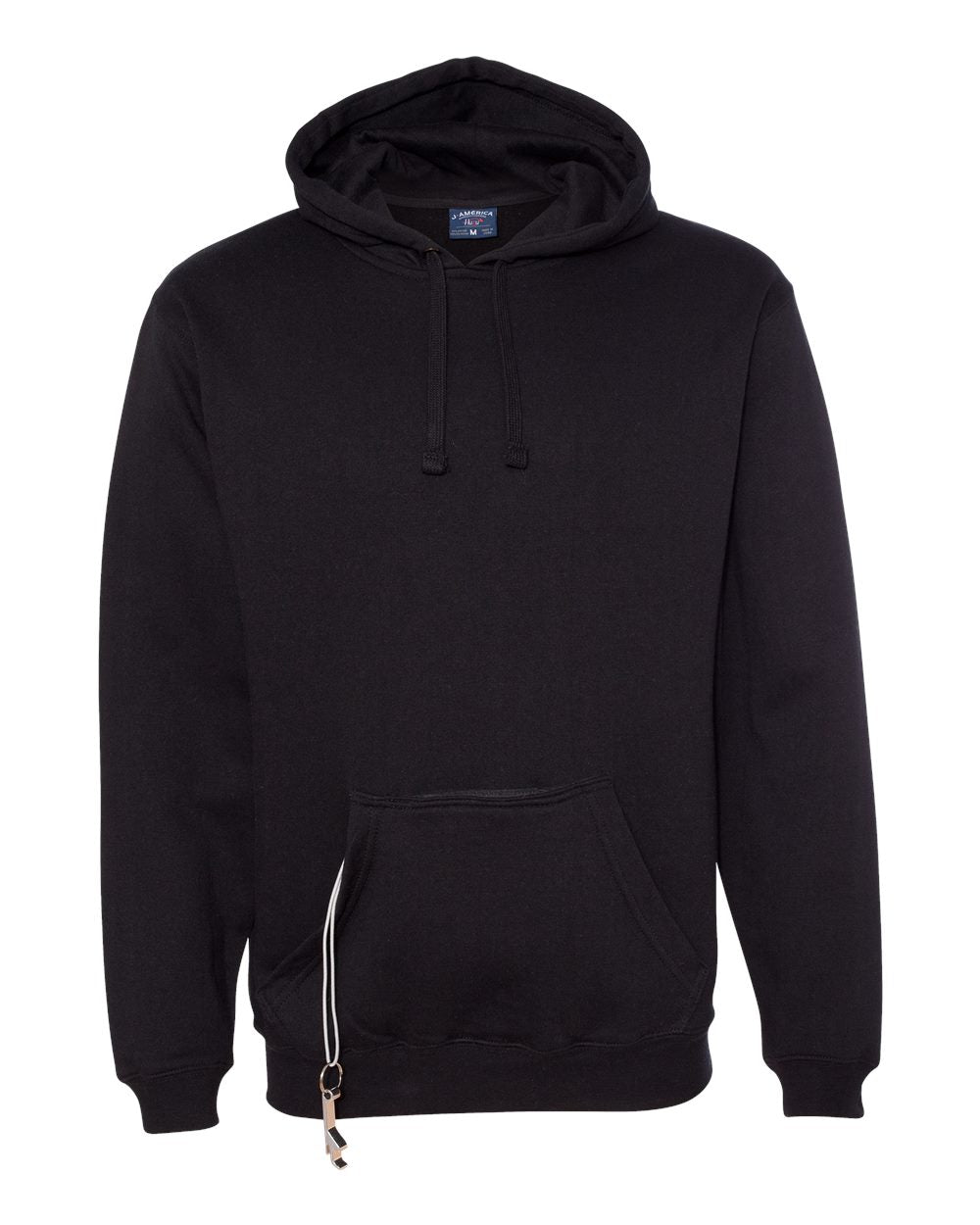 Hoodie Details: 9-ounce; 60% ring-spun cotton and 40% polyester fleece; J. America brand; cover-stitched throughout; built-in neoprene beverage holder inside pouch pocket; metal bottle opener attached to inside pocket; unisex/men's sizing.