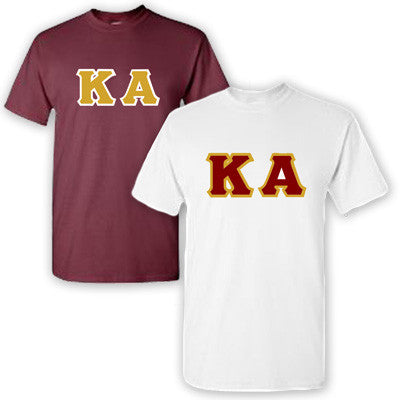 Get 2 T-shirts with 4-inch twill Kappa Alpha sewn-on letters on the front.