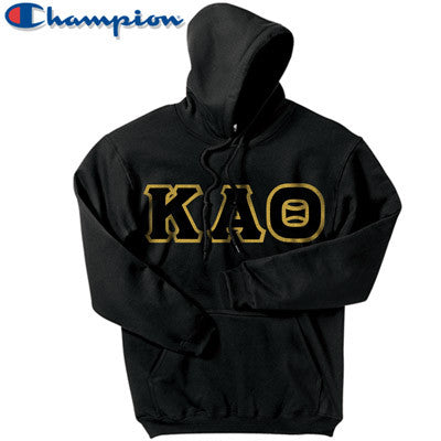 This Champion 9-ounce unisex/men's sized hooded sweatshirt is made specifically for Kappa Alpha Theta and comes with your Greek letters in twill sewn on the front.