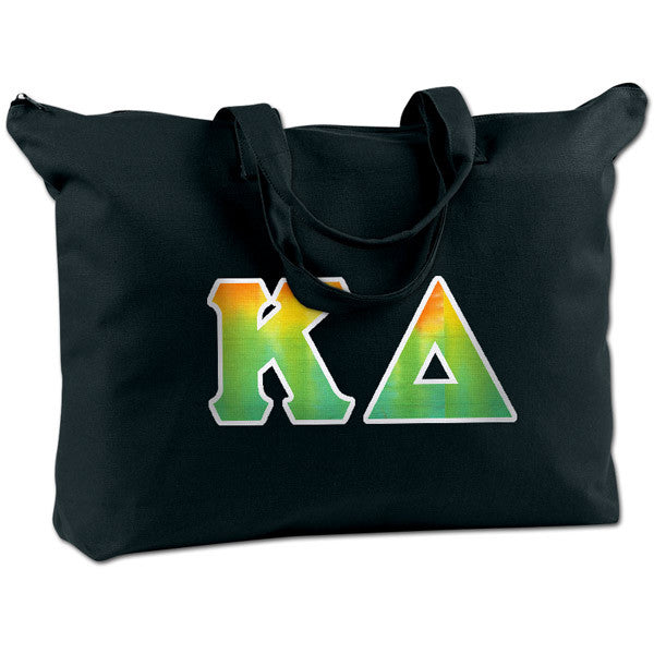 Customize this Kappa Delta shoulder tote bag with your Greek letters. Perfect for around the campus! Sorority letters measure 4-inches in height and can be personalized with your choice of pattern and border.