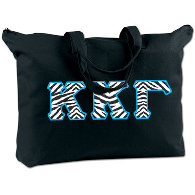 Customize this Kappa Kappa Gamma shoulder tote bag with your Greek letters. Perfect for around the campus! Sorority letters measure 4-inches in height and can be personalized with your choice of pattern and border.