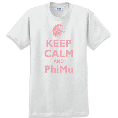 Keep Calm this school year with our new printed cadcut design that is made specifically for Phi Mu Sorority. Design comes printed as shown in the picture, you can choose the shirt color, size and Print Color. This is a unisex/men's sized t-shirt, 1-color design.