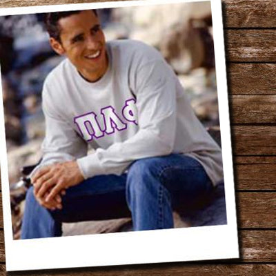 This long-sleeve Fraternity T-Shirt comes with 4-inch twill sewn-on letters on the front. Please select your Fraternities' Greek Letters in the dropdown above - we will use the Greek Symbols on the shirt.