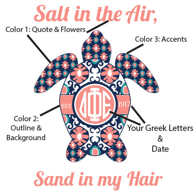 How To Order: Select your garment, select your size, then chose Color 1, 2, & 3, and enter your organizations date.Color 1 will be used for the Text & Flowers, Color 2 Will be used for the Background & Outline, Color 3 will be used for the accents. Please select your Sororities Greek letters above - we will only use the Greek Symbols in the design.