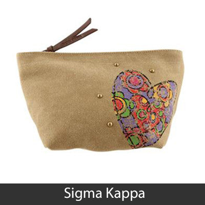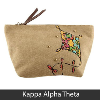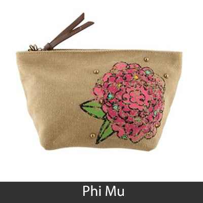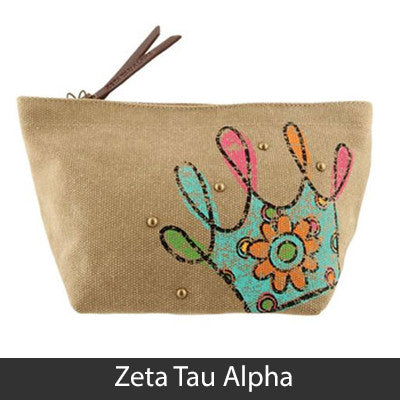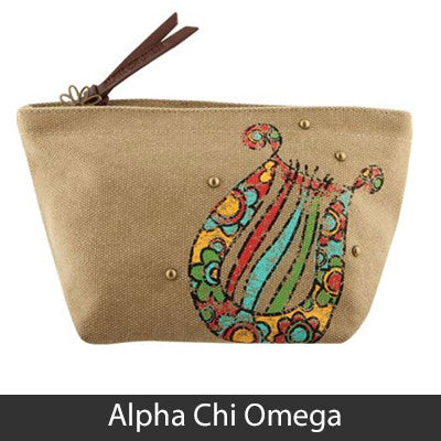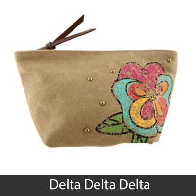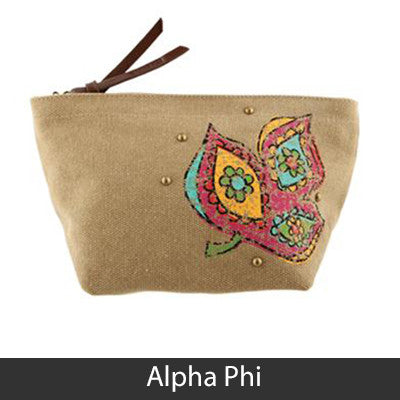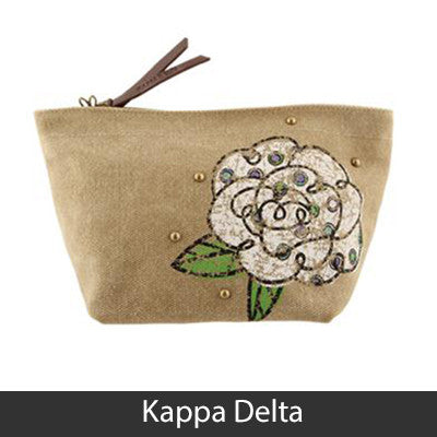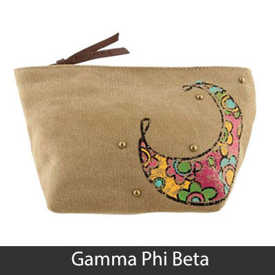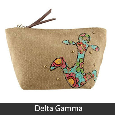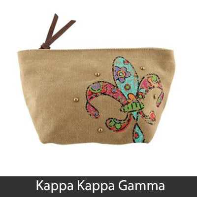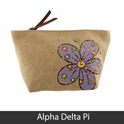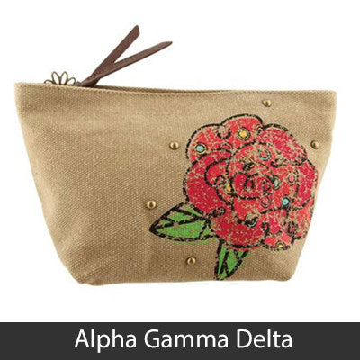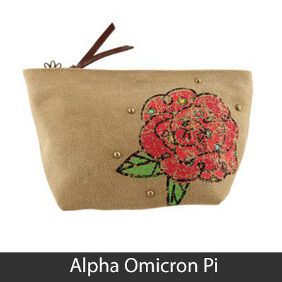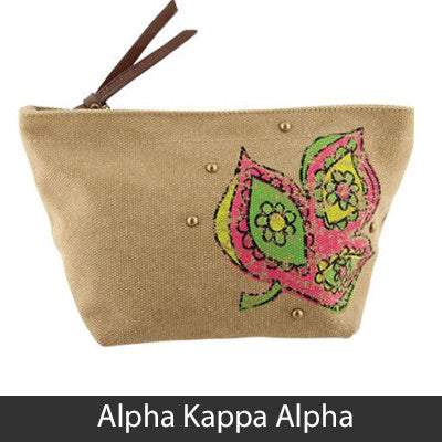 This Sorority Cosmetic bag comes with a charm on the zipper and with your Sororities' name embossed on the leather pull strap. Appropriate Sorority symbol will be displayed on the side of the bag. Approximately 5-inch x 8.625-inch and has a nylon lining. Only available for the Sororities listed on the dropdown. Rush service is available for 15% of the total, this service can be selected during checkout.