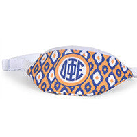 Sorority Fanny Packs are Back! Exclusive desden designed ikat pattern with your official Sorority monogram. Keep your hands free while you cheer on your team or take to the beach or spring break. USA made. Only available for the Sororities listed on the dropdown below. Measures: 11w x 6h x 3.5d. Rush service is available and can be selected during checkout.
