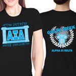 All designs can be changed for your organization. Shirts can be printed with any color ink and on any color shirt. We will assume a dark shirt and colors provided in artwork, unless you state differently. Price includes 2 color front and 2 color back, all screens and art time. Rush service is available. Minimum order is 24 pieces. For less then minimum pricing, please call. In box below please put in shirt sizes(i.e. 10L, 14M.) and group. Also please make sure to change the quantity box to the number of shirts that you are ordering so that your price is correct. In the comments section- please make any changes you need- ie. name, ink etc. Group discounts!