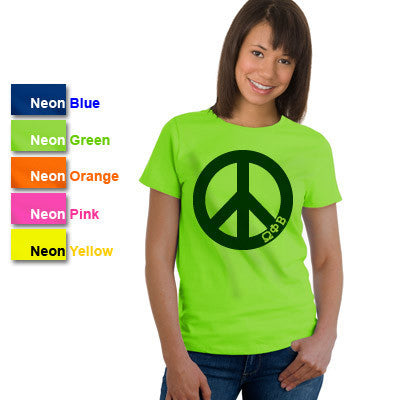 Omega Phi Beta unisex/men's sized neon peace sign printed tee comes as shown. This shirt glows under blacklight! This is a unisex/men's sized shirt and is NOT a ladies or fitted t-shirt. Shirt Features: Preshrunk 100% cotton jersey; 5.3-ounce; shoulder-to-shoulder tape; double-needle neck, sleeve and bottom hem. Rush service is available for 15% of the total price, this option is available during checkout. This is a PRINTED item. This item does NOT have sewn on twill letters. Any questions, please contact customer service.