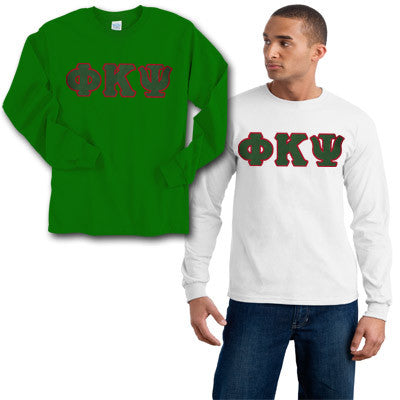 This Phi Kappa Psi longsleeve package comes with two longsleeve t-shirts that have Phi Kappa Psi Greek Symbols in 4-inch twill sewn-on letters on the front. These shirts are unisex/men's sized.