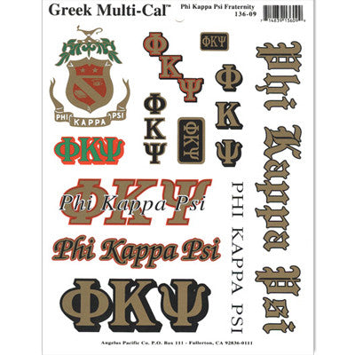 Phi Kappa Psi sticker sheet comes as shown, but the stickers are all separated. Rush service is available for 15% of the total price. This service can be selected during checkout.