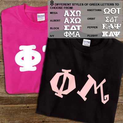 Get 2 Phi Mu printed t-shirts for almost the same price as getting one! 8 fonts and multiple colors to choose from. Gildan 5.3oz. 100% cotton, preshrunk t-shirts. Double-needle stitching throughout, seamless topstitched collar, taped neck and shoulders. Ash color is 99% cotton, 1% polyester, Sports Grey color is 90% cotton, 10% polyester, Heather Cardinal, Dark Heather and Heather Indigo are 50% cotton and 50% polyester. Rush service is available for 15% of the total price, this option is available during checkout. This is a PRINTED item. This item does NOT have sewn on twill letters. Any questions, please contact customer service.