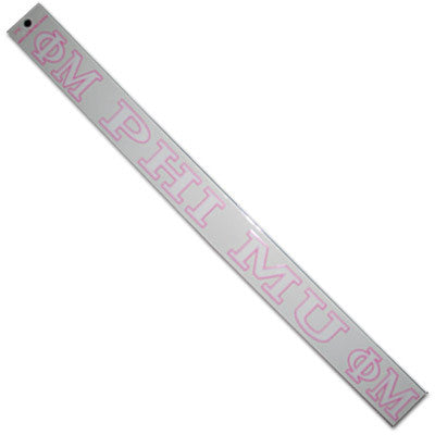 Phi Mu long car decal is approximately 1-inch in height. Decal comes as shown and is meant to be placed on the inside of the window. Just peel and stick. Rush service is available for 15% of the total, this service can be selected during checkout.