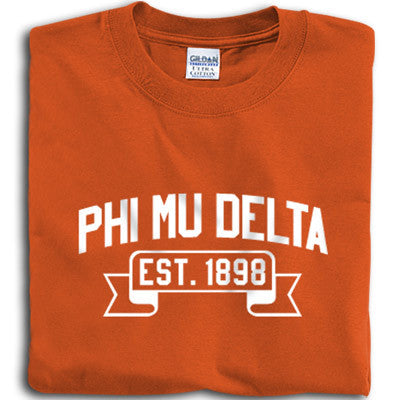 Phi Mu Delta Vintage Football Printed T-Shirt comes as shown but you can select the date, shirt color and print color. We allow you to input your date in case you would rather the chapter or colony established date instead of your national established date.