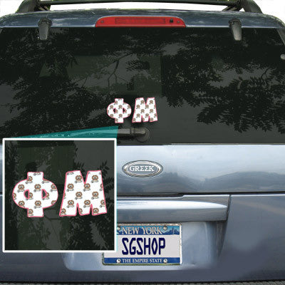 Phi Mu Mascot Car Window Sticker is designed for the outside of car windows and comes as shown. This product is great for tinted windows. The decal measures approximately 2.5-inches in height and 4.5-inches in length. Materials - 2 Mil Premium White Vinyl made for the outside of windows or hard surfaces.