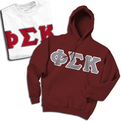 Phi Sigma Kappa hoody / t-shirt pack comes with 4 inch twill Greek letters sewn on the front of both garments. Hoody: Gildan 7.75oz unisex/men's sized hooded sweatshirt, 50% cotton and 50% polyester. T-Shirt: Gildan 5.3oz unisex/men's sized t-shirt, 100% cotton, preshrunk. Rush service is available for a fee of 15% of the total price, this service can be selected during checkout.