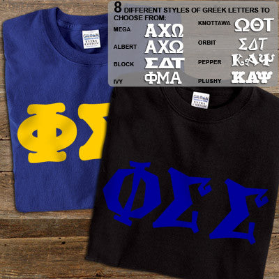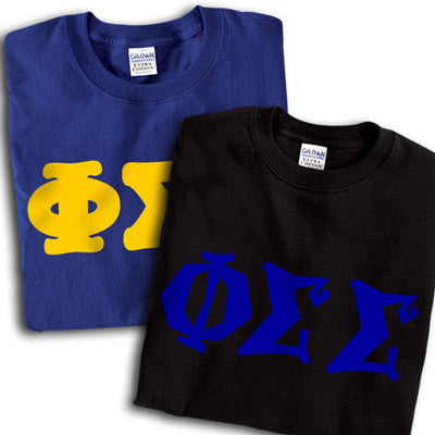 Get 2 Phi Sigma Sigma printed t-shirts for almost the same price as getting one! 8 fonts and multiple colors to choose from. Gildan 5.3oz. 100% cotton, preshrunk t-shirts. Double-needle stitching throughout, seamless topstitched collar, taped neck and shoulders. Ash color is 99% cotton, 1% polyester, Sports Grey color is 90% cotton, 10% polyester, Heather Cardinal, Dark Heather and Heather Indigo are 50% cotton and 50% polyester. Rush service is available for 15% of the total price, this option is available during checkout. This is a PRINTED item. This item does NOT have sewn on twill letters. Any questions, please contact customer service