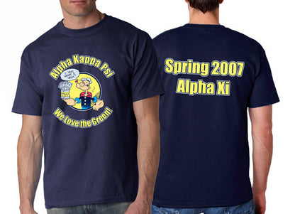 All designs can be changed for your organization. Shirts can be printed with any color ink and on any color shirt. We will assume a dark shirt and colors provided in artwork, unless you state differently. Price includes 4 color front and 2 color back, all screens and art time. Rush service is available. Minimum order is 24 pieces. For less then minimum pricing, please call. In box below please put in shirt sizes(i.e. 10L, 14M.) and group. Also please make sure to change the quantity box to the number of shirts that you are ordering so that your price is correct. In the comments section- please make any changes you need- ie. name, ink etc. Group discounts!