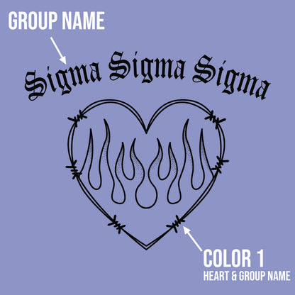 This custom Printed Flame Heart Hoodie Design features a sorority design and sorority name on the front. Pick your own print color for a personalized touch. Stay warm and show off your sorority pride in style.