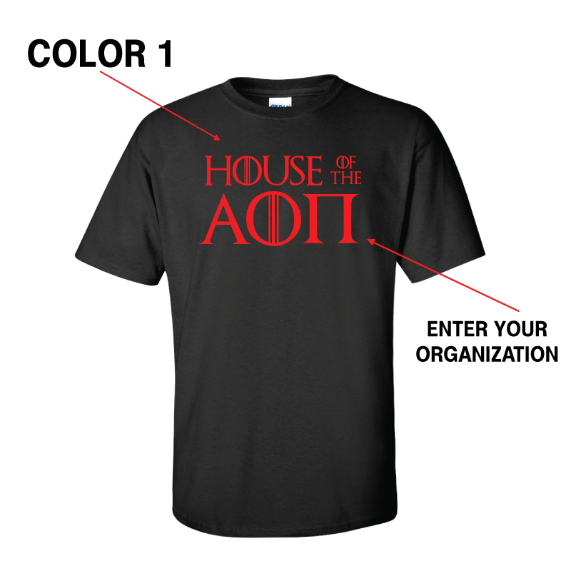 Garment will come with the design printed on the front! Just select your garment, garment color, size, print color, and enter your organizations letters. All garments are unisex/men's sized. Rush service is available and can be selected during checkout.