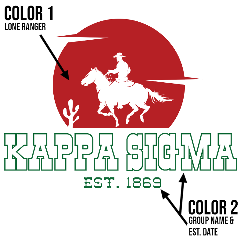 Garment will come with the design printed on the front! Just select your garment, garment color, size, print colors, enter your organizations letters and EST date. All garments are unisex/men's sized. Rush service is available and can be selected during checkout.