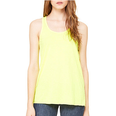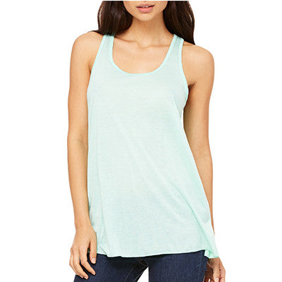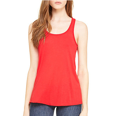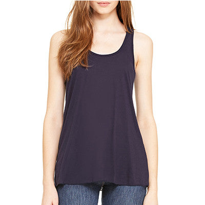 Bella Tank Features: Bella brand; 3.7-ounce; viscose polyester; flowy jersey; A-line body; shirring at racerback seam; merrowed hem; sized for ladies.