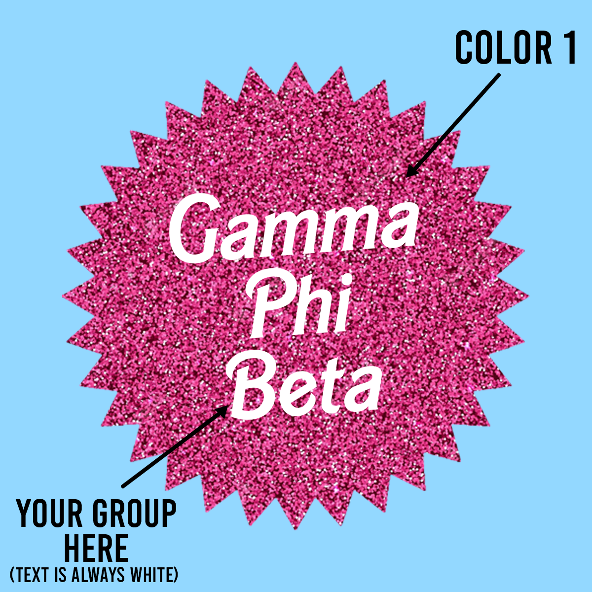 Printed Sparkle Circle Design is a custom design available on t-shirts, long sleeves, hoodies and crewnecks. With glitter background and white lettering, this design is perfect for any organization looking to stand out. Each piece is made with a stunning circle glitter design so you can show off your style in comfort.