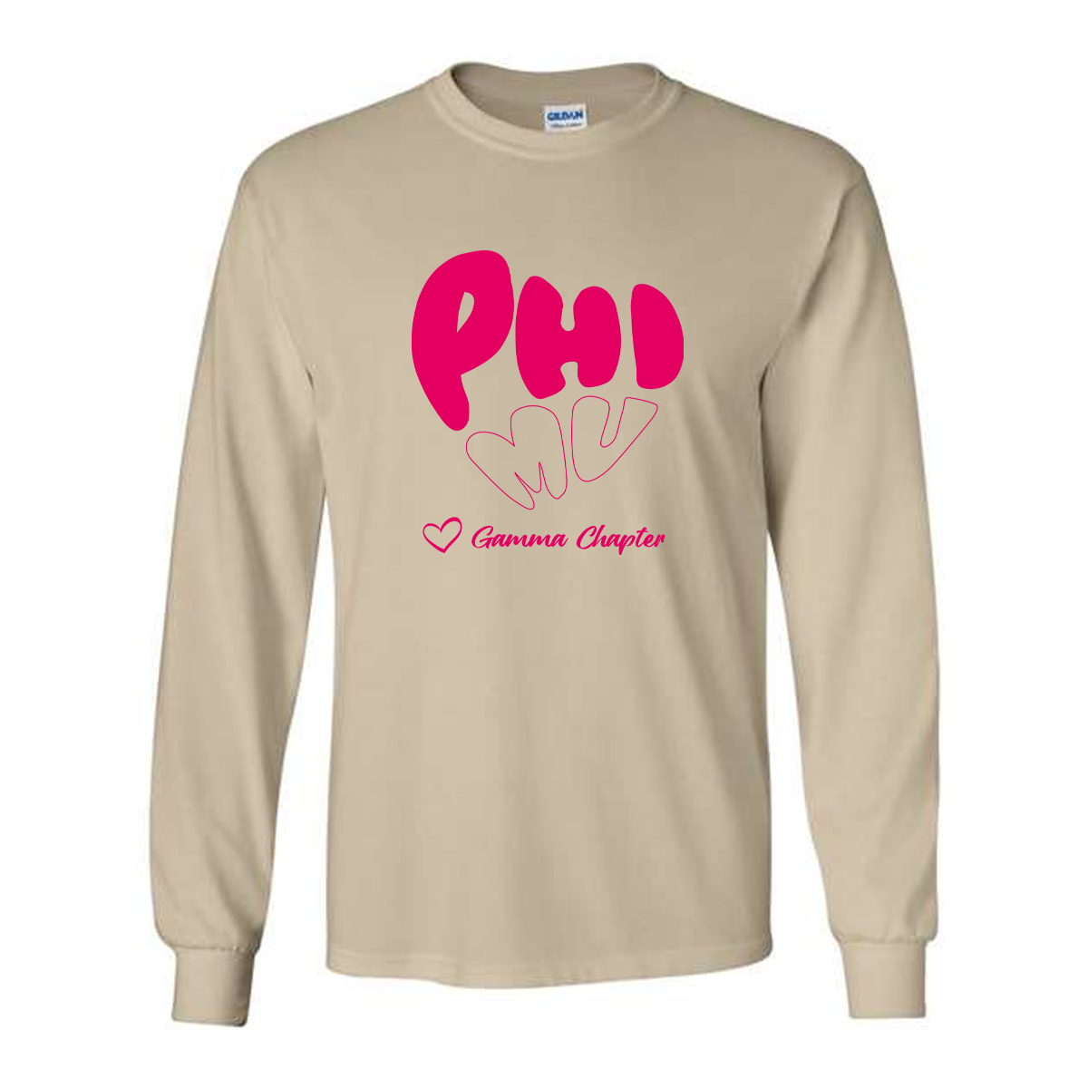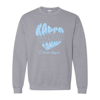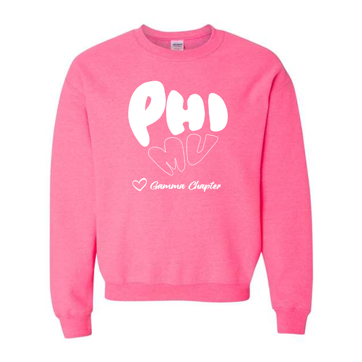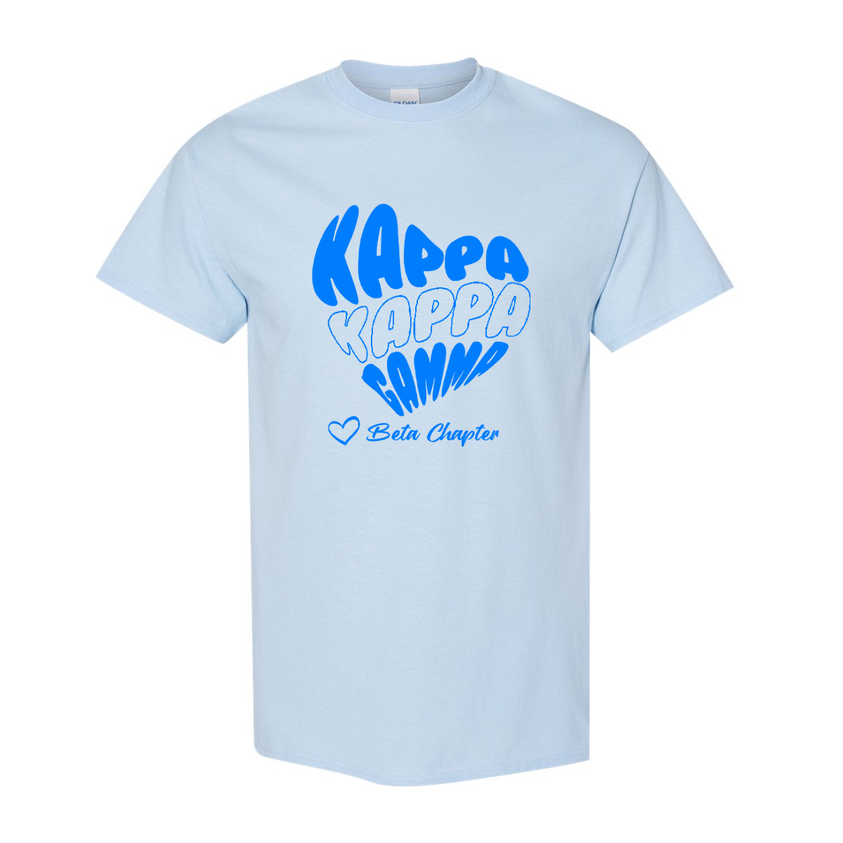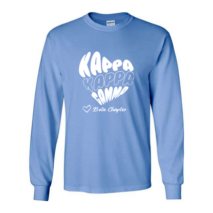Stay fashionable with the Printed Wavy Groovy Heart Design. This 1-color design is customized for your group or chapter, and available in t-shirt, long sleeve, hoodie, and crewneck styles. Show off your style and stay comfortable all day.