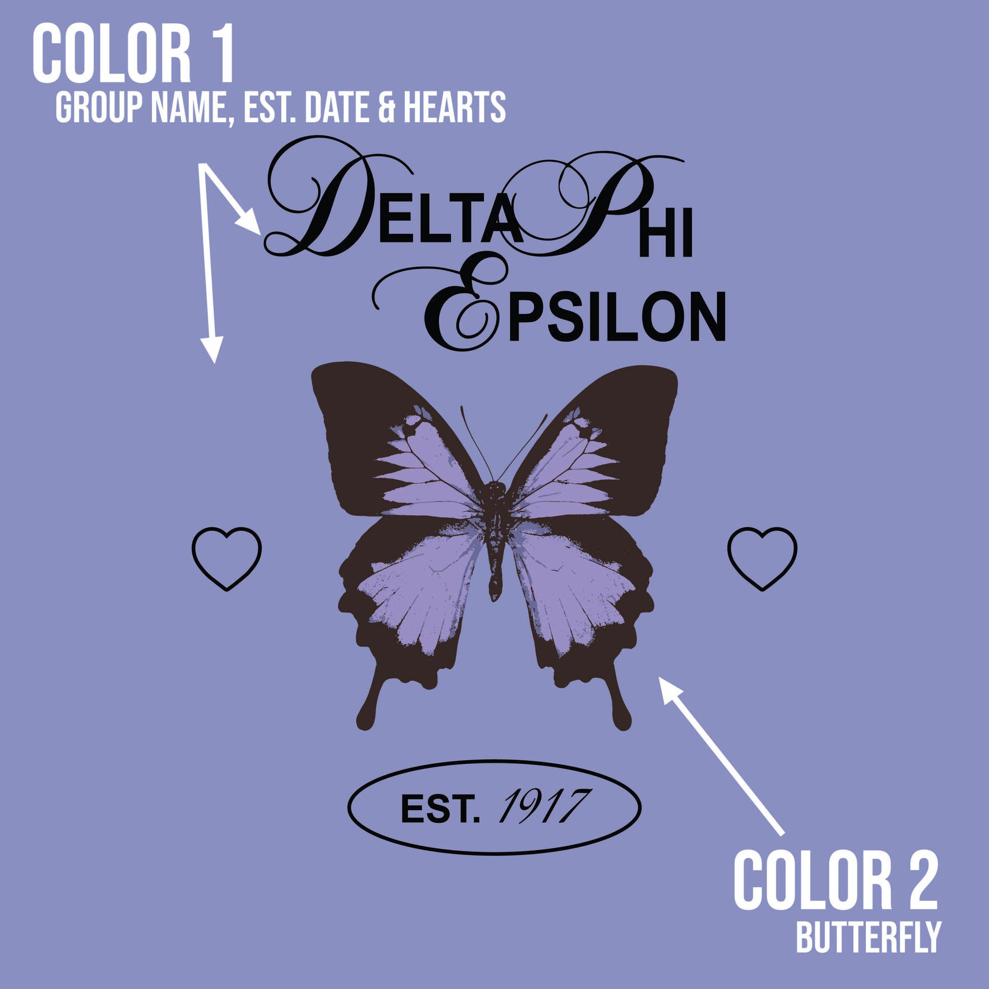 Garment will come with the design printed on the front! Just select your garment, garment color, size, print colors, enter your organizations letters, and EST date. All garments are unisex/men's sized. Rush service is available and can be selected during checkout.