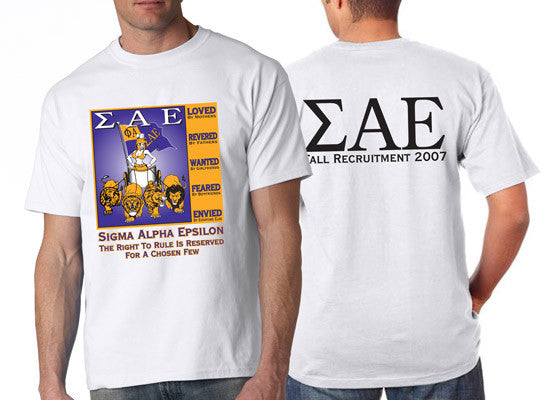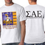 All designs can be changed for your organization. Shirts can be printed with any color ink and on any color shirt. We will assume a white shirt and colors provided in artwork, unless you state differently. Price includes 4 color front and 1 color back, all screens and art time. Rush service is available. Minimum order is 24 pieces. For less then minimum pricing, please call. In box below please put in shirt sizes(i.e. 10L, 14M.) and group. Also please make sure to change the quantity box to the number of shirts that you are ordering so that your price is correct. In the comments section- please make any changes you need- ie. name, ink etc. Group discounts!