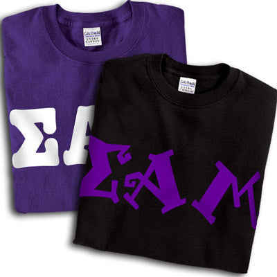 Get 2 Sigma Alpha Mu printed t-shirts for almost the same price as getting one! 8 fonts and multiple colors to choose from. Gildan 5.3oz. 100% cotton, preshrunk t-shirts. Double-needle stitching throughout, seamless topstitched collar, taped neck and shoulders. Ash color is 99% cotton, 1% polyester, Sports Grey color is 90% cotton, 10% polyester, Heather Cardinal, Dark Heather and Heather Indigo are 50% cotton and 50% polyester. Rush service is available for 15% of the total price, this option is available during checkout. This is a PRINTED item. This item does NOT have sewn on twill letters. Any questions, please contact customer service.