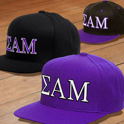 This Yupoong cap comes with a classic snapback closure and a flat visor and comes with the Sigma Alpha Mu greek symbols embroidered on the front. This cap features 2-color embroidered letters. One size.