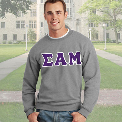 This Gildan crewneck comes with 4-inch twill sewn-on Sigma Alpha Mu greek symbols on the front.