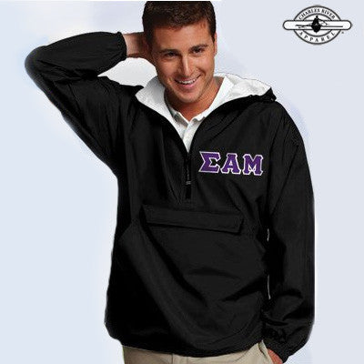 Our most popular jacket! Sigma Alpha Mu Greek twill letters are sewn-on either the left chest in 2 inches, or on the back in 4 or 6 inches. New Option - you can now add 2-inch twill letters to the left chest of the jacket that match the 4-inch or 6-inch ones you are adding to the back of the jacket. This new option is also in the the dropdown for letter placement - additional cost. Water-resistant River Tec Nylon lined with 100% cotton flannel. Open hem with shockcord drawstring. Elasticized cuffs; extended zipper above neck for wind protection. Rush service is available for a fee of 15% of total, this service can be selected during checkout.
