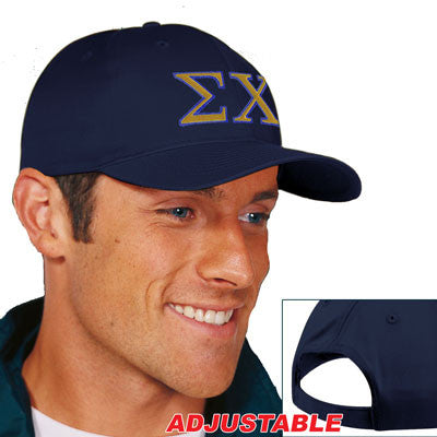 Order your 2-color embroidered Sigma Chi Fraternity hat to match your shirt today! Comes in over 14 colors. Each cap comes with your Sigma Chi Greek symbols embroidered on the front in two colors. You choose the color of the cap, the letter color and the outline color. One size fits all - adjustable.