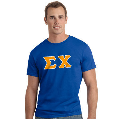 Sigma Chi Letter T-Shirt comes with Sigma Chi in 4-inch Greek Twill letters sewn on the front.