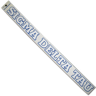 Sigma Delta Tau long car decal is approximately 1-inch in height. Decal comes as shown and is meant to be placed on the inside of the window. Just peel and stick. Rush service is available for 20% of the total, this service can be selected during checkout.