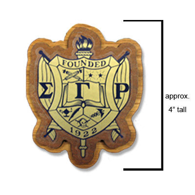 This Sigma Gamma Rho Crest is perfect for any wooden item. It measures approximately 4-inches in height. Can be used with wood glue. Rush service is available for 20% of the total price, this service can be selected during checkout.