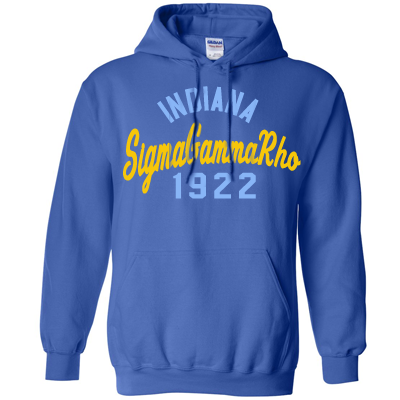 Sigma Gamma Rho will be written out in the middle, in the script font, as shown here. You then can choose the state you would like to be displayed, it can be your current location, your founding state, etc. Also displayed on this sweatshirt is the date of your choosing which will be printed below Sigma Gamma Rho. Don't forget to select your state and fill in the date you want below. Please note, 2 colors will be used in this print so please select a color for your state and date, then select the color for Sigma Gamma Rho. This sweatshirt is unisex/men's sizing.