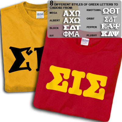Get 2 Sigma Iota Sigma printed t-shirts for almost the same price as getting one! 8 fonts and multiple colors to choose from. Gildan 5.3oz. 100% cotton, preshrunk t-shirts. Double-needle stitching throughout, seamless topstitched collar, taped neck and shoulders. Ash color is 99% cotton, 1% polyester, Sports Grey color is 90% cotton, 10% polyester, Heather Cardinal, Dark Heather and Heather Indigo are 50% cotton and 50% polyester. Rush service is available for 20% of the total price, this option is available during checkout. This is a PRINTED item. This item does NOT have sewn on twill letters. Any questions, please contact customer service.