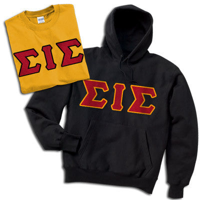 Sigma Iota Sigma hoody / t-shirt pack comes with 4 inch twill Greek letters sewn on the front of both garments. Hoody:Gildan 7.75oz unisex/men's sized hooded sweatshirt, 50% cotton and 50% polyester. T-Shirt: Gildan 5.3oz unisex/men's sized t-shirt, 100% cotton, preshrunk. Rush service is available for a fee of 20% of the total price, this service can be selected during checkout.