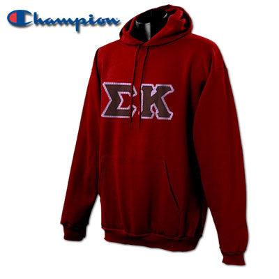 This Champion 9-ounce unisex/men's sized hooded sweatshirt is made specifically for Sigma Kappa and comes with your Greek letters in twill sewn on the front.