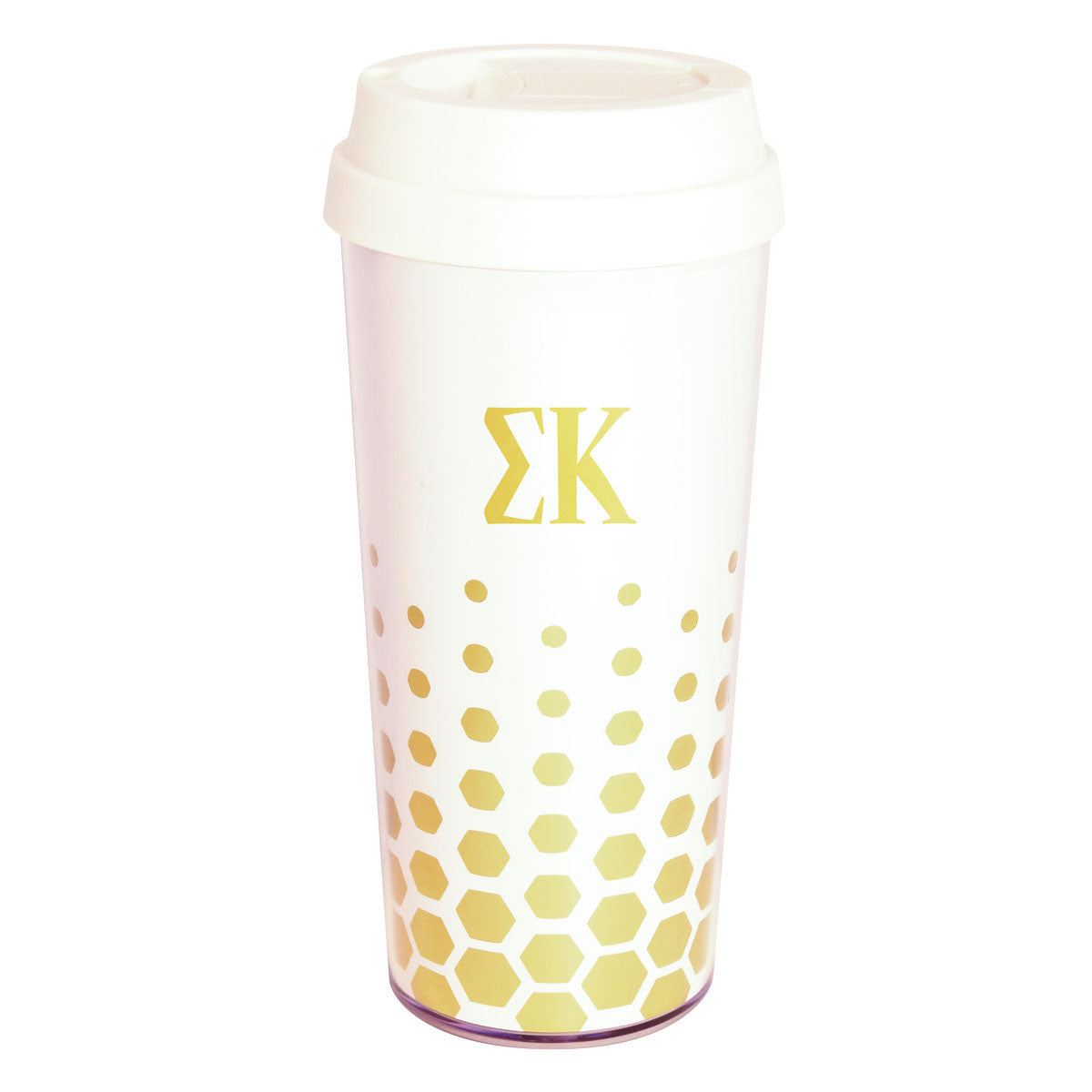 Sigma Kappa coffee tumbler comes in your sorority colors shown.