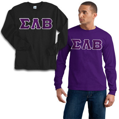 This Sigma Lambda Beta longsleeve package comes with two longsleeve t-shirts that have Sigma Lambda Beta Greek Symbols in 4-inch twill sewn-on letters on the front. These shirts are unisex/men's sized.