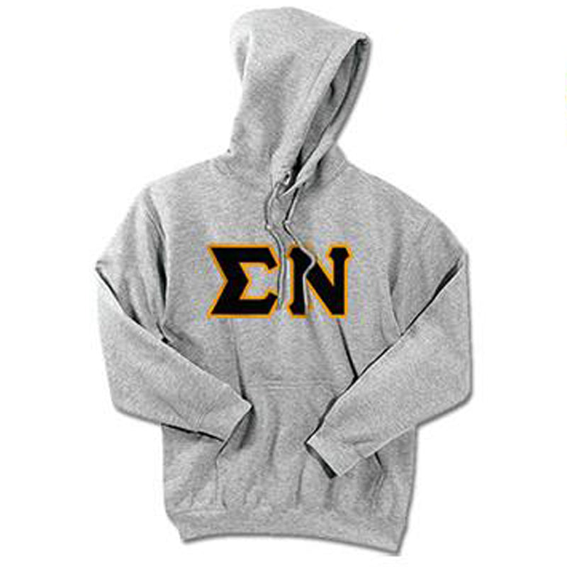 Sweatshirt will come with sewn-on twill Greek letters for Sigma Nu. We have selected your letter color / border color (pictured) for you to make it easier and to Rush the product out to you.
