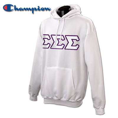 This Champion 9-ounce unisex/men's sized hooded sweatshirt is made specifically for Sigma Sigma Sigma and comes with your Greek letters in twill sewn on the front.