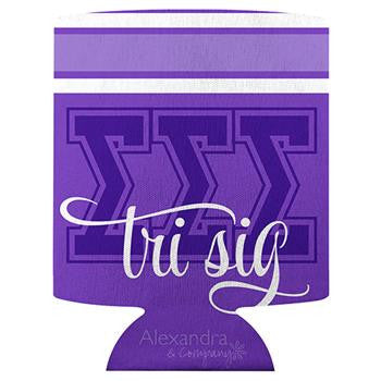 Sigma Sigma Sigma koozie available in your Sorority colors shown.