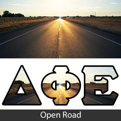 This Panoramic printed, lettered Sorority T-Shirt only comes in White and features your Sorority's Greek Symbols on the front. You get to pick the Panoramic Image to use in your Greek Letters. The Letter size is 4-inches. Please write-out the Sorority name above--we will only use the Greek Symbols on the T-Shirt in the font that is shown. This is a printed Unisex/Men's sized T-Shirt.